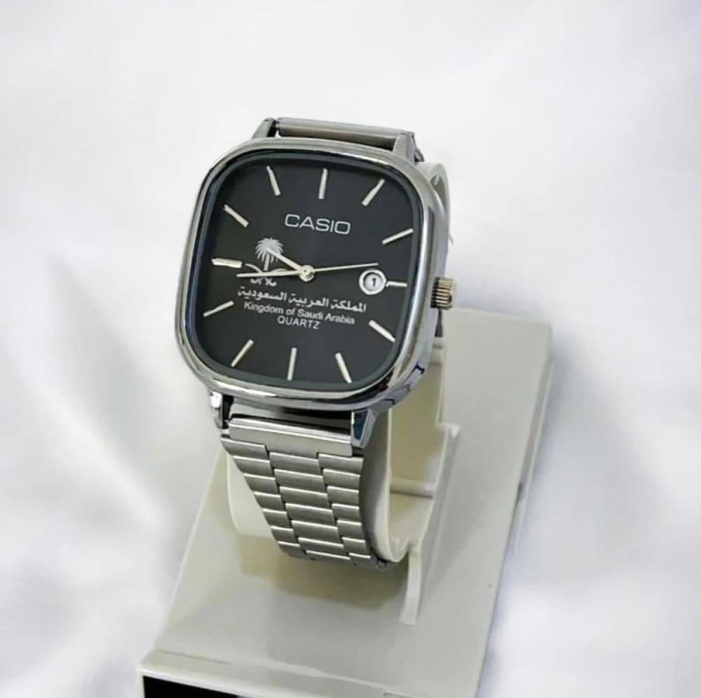 ساعة رجالية (ماستر) درجة اولى من كاسيو سير فضي ميناء أسود اصدار خاص CASIO